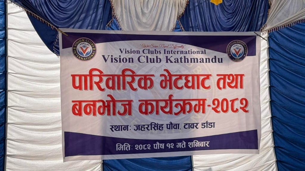 अमेरिकाको न्यूयोर्कमा मुख्यालय रहेको भिजन क्लबस् ईन्टरनेशनले डिसेम्बर २७ तारिक अर्थात पुस १२ गते काठमाडौंको प्रसिद्ध रमणिय स्थल जहरसिंह पौवाको टावर डाँडामा आयोजना गरेको पारिवारिक बनभोज कार्यक्रम सफलतापूर्वक सम्पन्न भएको छ ।