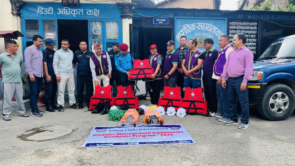 नेपालमा हरेक बर्ष सामना गर्नु पर्ने प्राकृतिक प्रकोपका पिडित र विपन्न परिवारलाई आर्थिक तथा आवश्यक सामग्री गर्दै आएको आएको क्लबले मन्सूनी बर्षात सुरु हुदै गर्दा विभिन्न स्थानमा हुनसक्ने बिपदलाई मध्यनजर राख्दै प्रहरी बृत्त बालाजुलाई बिपद ब्यवस्थापन सम्बन्धि उद्धार सामग्री उपकरणं समेत हस्तान्तरण गरेको छ ।