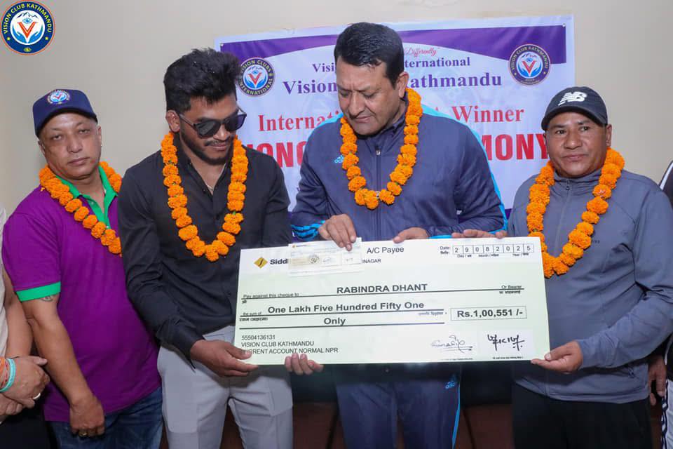 गत जुलाईमा भारतमा सम्पन्न एमएमए(MMA) प्रतियोगीतामा भारतका चोंगरेंग कोरेनलाई तेश्रो राउंडमा नकआउंटद्वारा पराजित गर्दै च्याम्पिएन बनेका नेपालका रबिन्द्र ढाँटलाई एक समारोहका विच हौसला स्वरूप नगद रू। १,००,५५१ (एक लाख पांच सय एकाउंन्न) सहित सम्मान गरेको संस्थाले गोकर्णेश्वर न पा ४ तालिञ्चोक निवासी आन्द्रा क्यान्सर बिरामी राजेश श्रेष्ठको उपचारार्थ परिवारलाई ४०,००० रुपैयाँ पनि सन् २०२५ मा हस्तान्तरण गरेको थियो ।