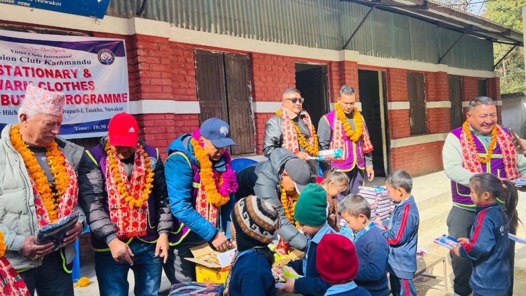 विश्वव्यापि सामाजिक अभियानमा रहेको भिजन क्लबस् ईन्टरनेशनलले नुवाकोटको हिल्चे आधारभूत बिद्यालयमा शैक्षिक सामग्री तथा न्यानो कपडा वितरण गरेको छ । क्लबस्को नेपाल स्थित केन्द्रिय शाखा भिजन क्लब अफ काठमाडौंले जनवरी ९ तारिक शुक्रबार नुवाकोटको शिवपुरी १ तलाखु स्थित हिल्चे आधारभूत स्कुलमा शैक्षिक सामग्री तथा न्यानो कपडा वितरण गरेको हो ।